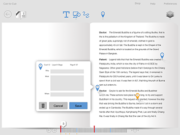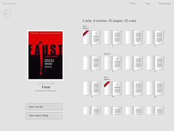 Get a fast overview of the entire script. Marking show where acts and scenes begin. From this page you can also export cast list, access timer details and much more.