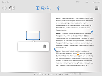 You can draw directly on your script pages. Insert either shapes, images or do freehand drawing on the page. Shapes and freehand can be used as highlighter for important passages in the script or you can add stage drawings.